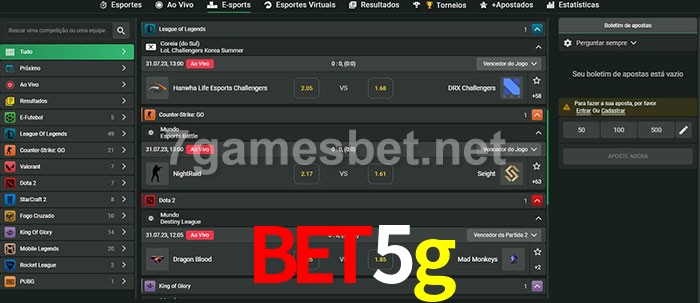 O bet5g oferece uma grande seleção de opções de apostas em e-sports com probabilidades competitivas